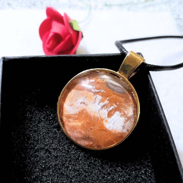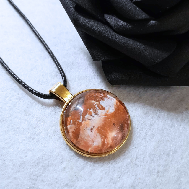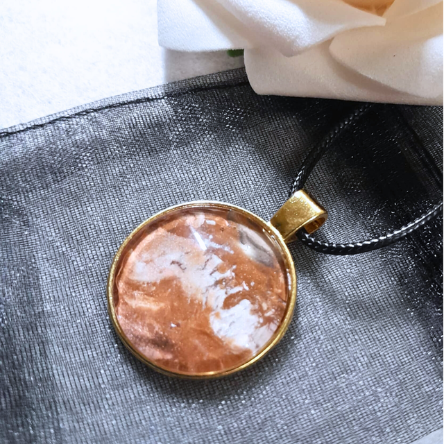- Matière : Support métallique doré, grand cabochon en verre de 25 mm.