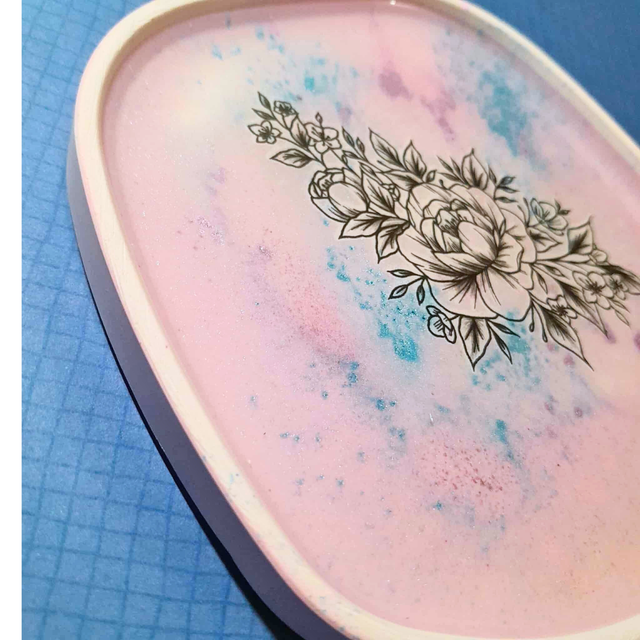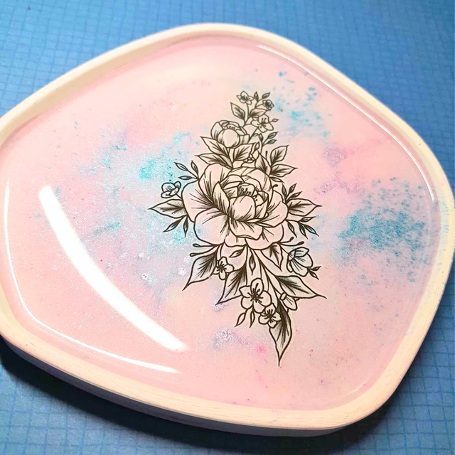 Un vide-poche en éco-résine alliant douceur contemporaine et peps floral.