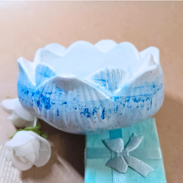 BRISE MARINE - Lotus décoratif - Éco-résine blanc & bleu pailleté