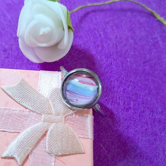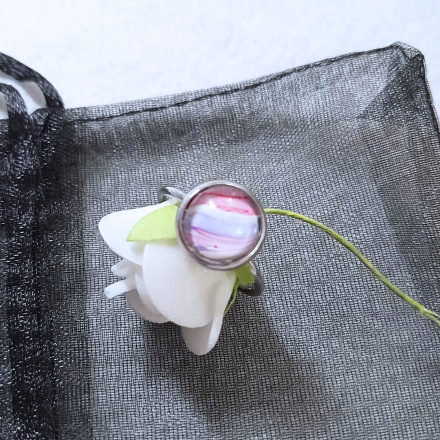 Une bague ajustable délicate et lumineuse, offrant une composition harmonieuse aux nuances printanières.
