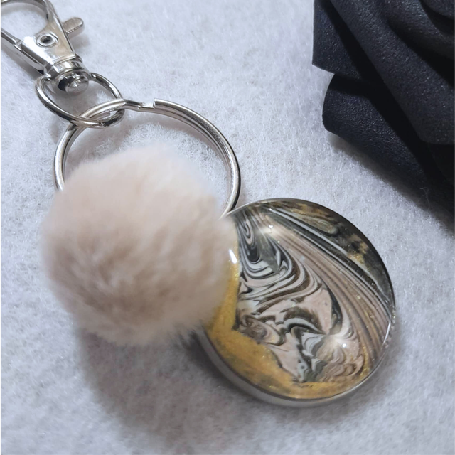 Un accessoire de sac sophistiqué qui joue sur le contraste entre la profondeur du noir, l'éclat de l'or et la douceur du beige.