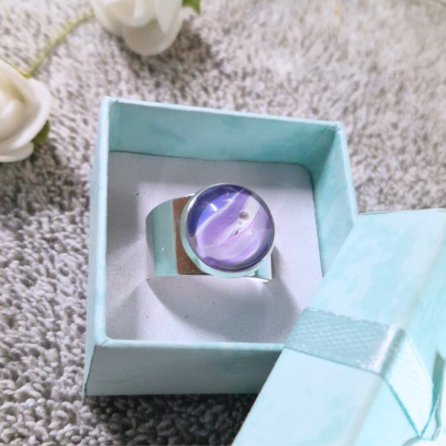 Une bague large au design moderne, mettant en valeur un motif aux nuances apaisantes et équilibrées.