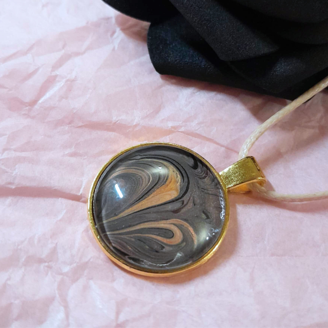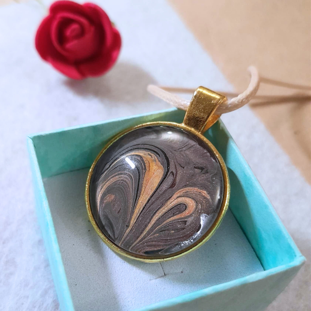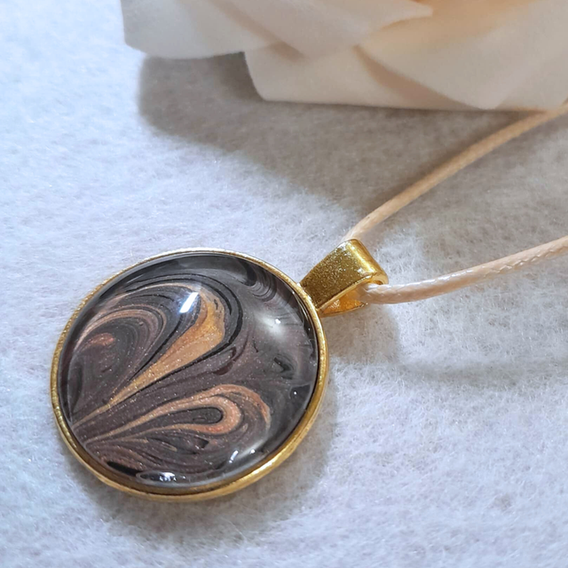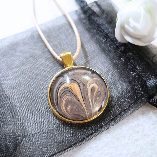 Un collier-pendentif aux tons chauds et réconfortants, évoquant la richesse des nuances chocolatées et bronzées.