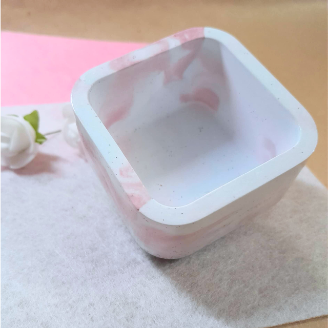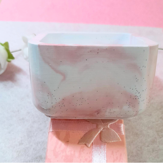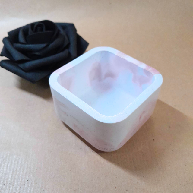 DOUCEUR POUDREE - Pot décoratif minimaliste - Éco-résine blanc & rose marbré