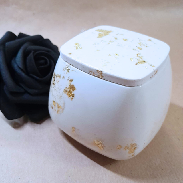 ECLAT DORE - Boîte décorative - Éco-résine blanc cassé & feuilles d'or