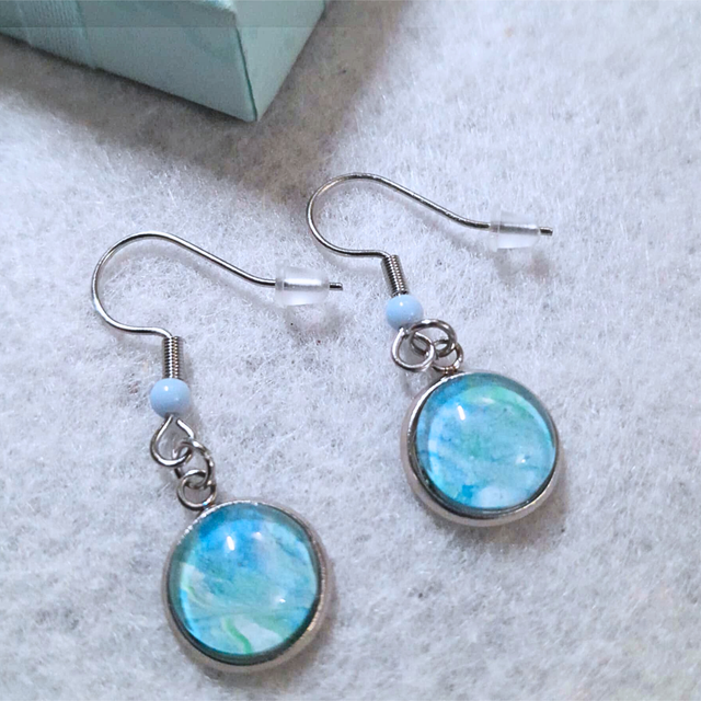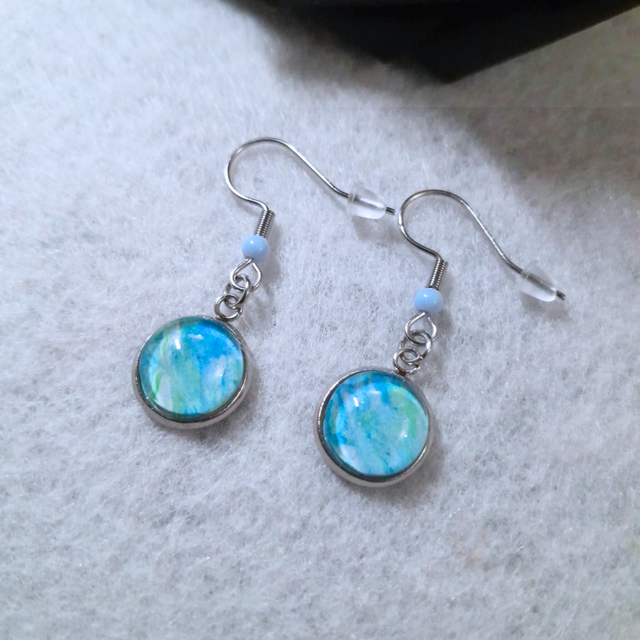 Des boucles d'oreilles discrètes aux nuances apaisantes évoquant les reflets de l'océan.