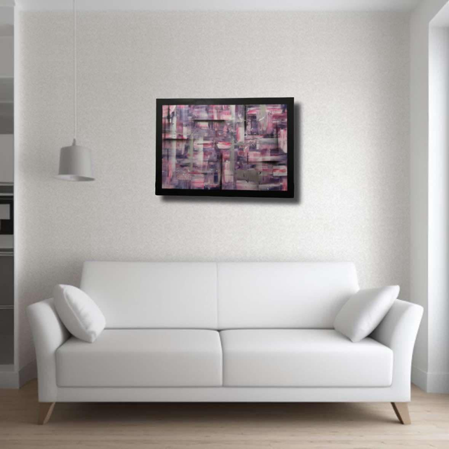 Ce tableau dégage une énergie moderne, invitant le regard à se perdre dans ses nuances et ses mouvements dynamiques.