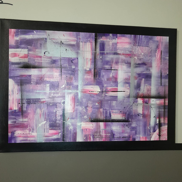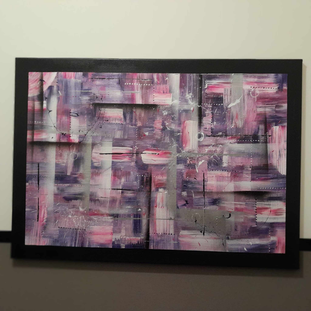 Laissez-vous captiver par "Electric bloom", une œuvre abstraite vibrante où le rose et le violet s'entremêlent avec le blanc et le noir, créant une composition électrisante et florale.