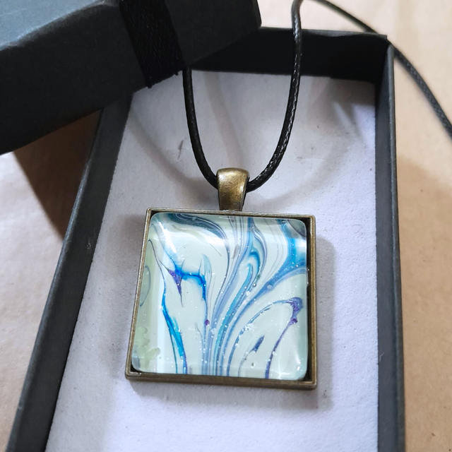 FLOCON NACRE - Collier - Carré, bleu vert