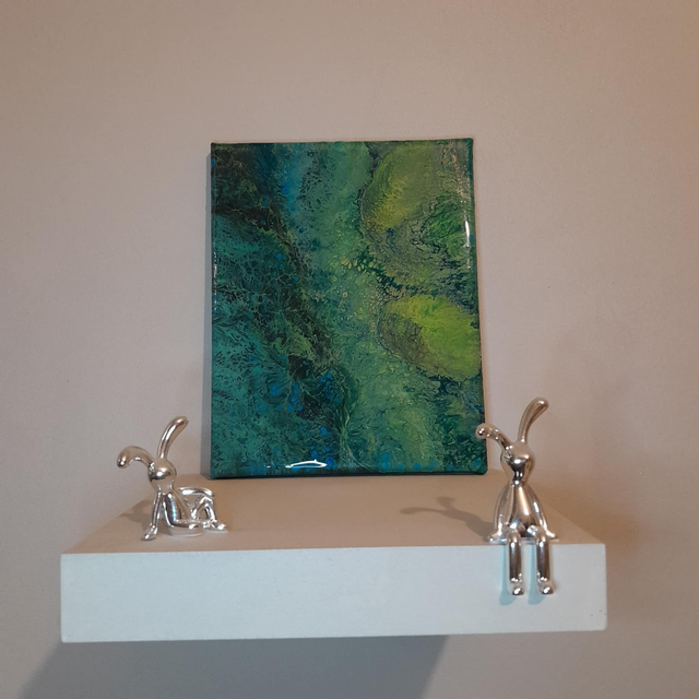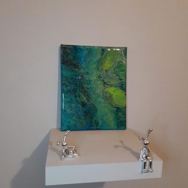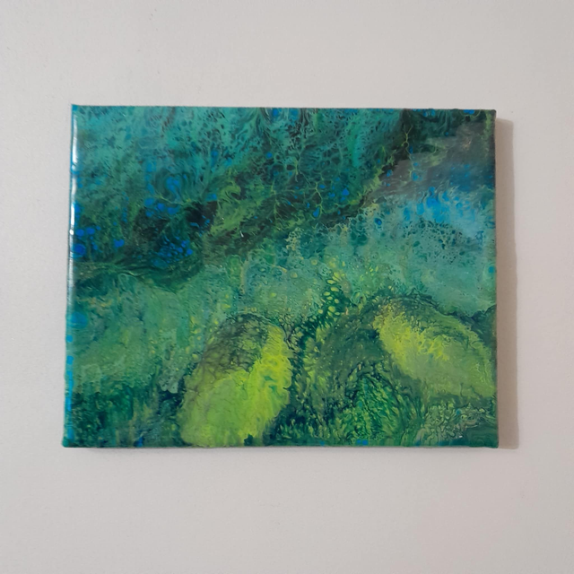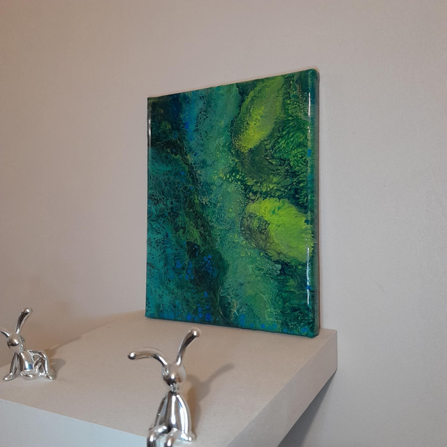 Explorez la richesse de "Forêt cellulaire", une œuvre abstraite où les tons de vert et de jaune s'épanouissent en une multitude de cellules fascinantes. Créées grâce à l'huile de silicone, ces formes organiques invitent à la contemplation et évoquent la complexité vibrante de la nature.