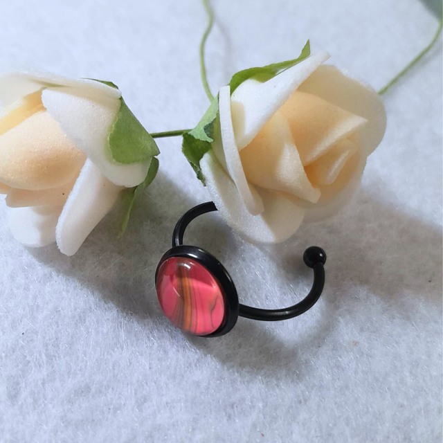 2. Matière : Support en métal noir et cabochon en verre de 10 mm.