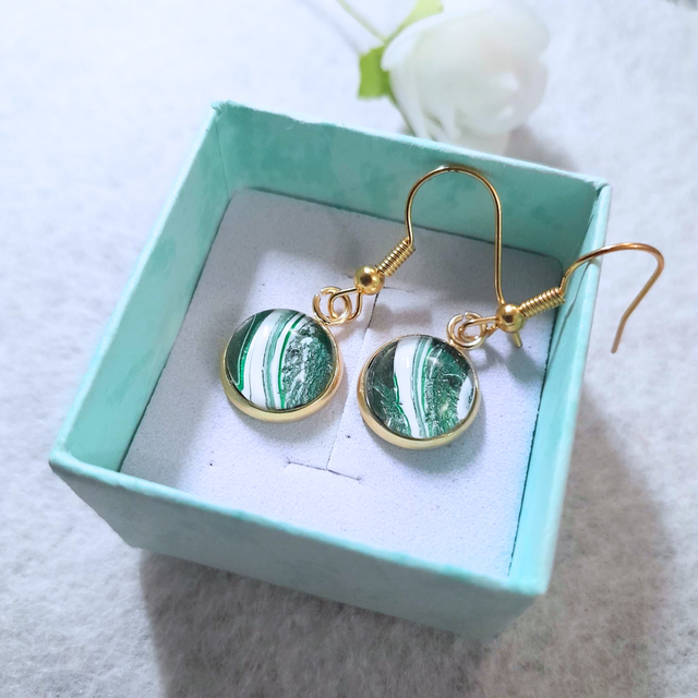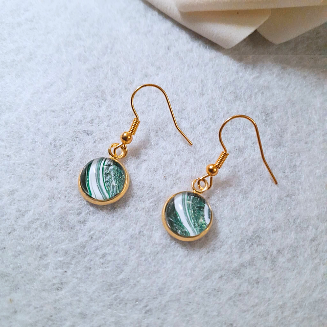 Des boucles d'oreilles au charme rétro et luxueux, mariant l'éclat de l'or à la fraîcheur d'un vert lumineux.