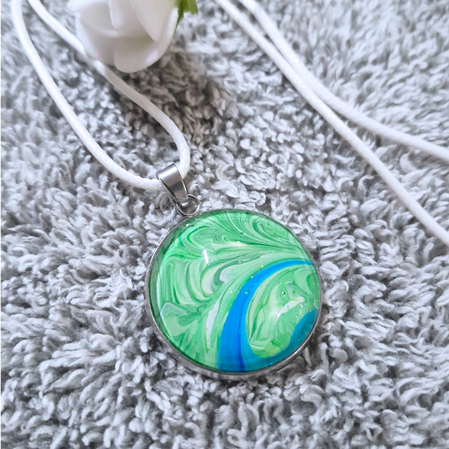 - Type : Collier-pendentif avec cordon blanc ajustable.