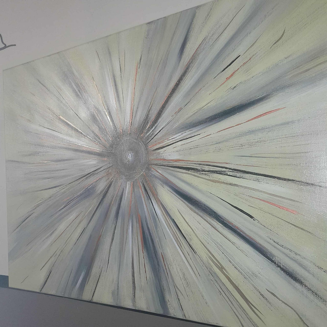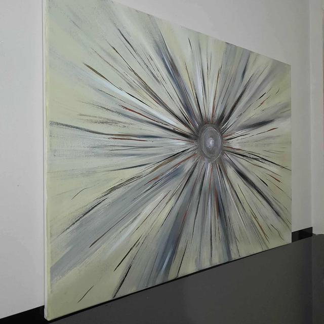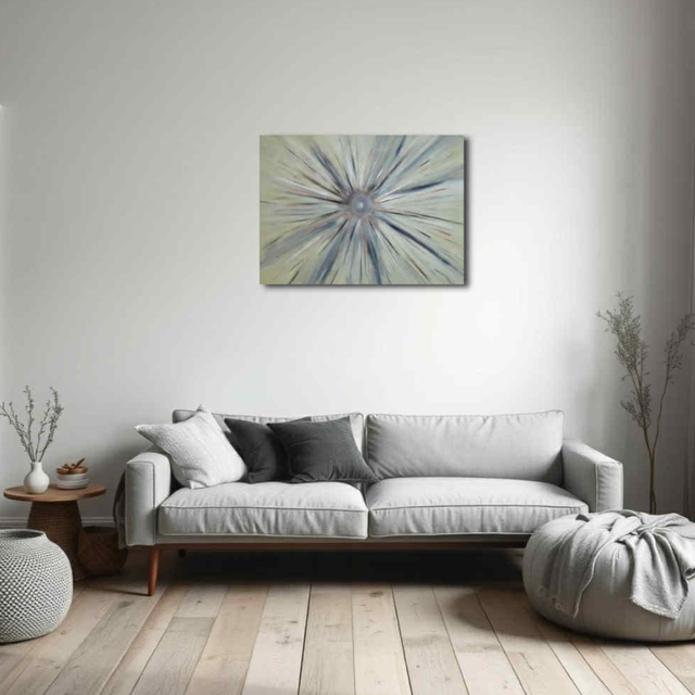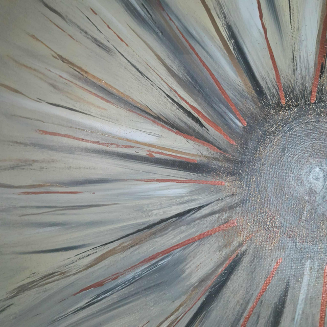 Ce motif audacieux, caractérisé par son centre explosif, évoque la force créatrice et le dynamisme. Ce tableau est conçu pour inspirer et stimuler la pièce dans laquelle il est exposé.