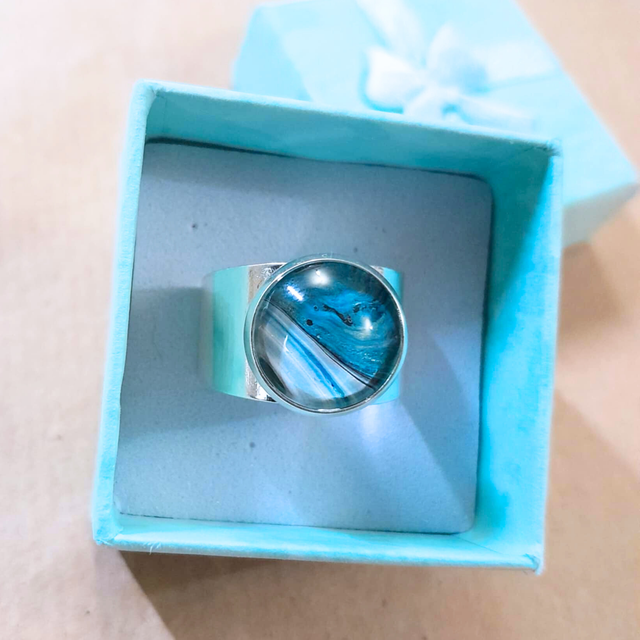 Un bijou captivant qui capture la vastitude et la sérénité des océans dans un tourbillon de nuances azurées.