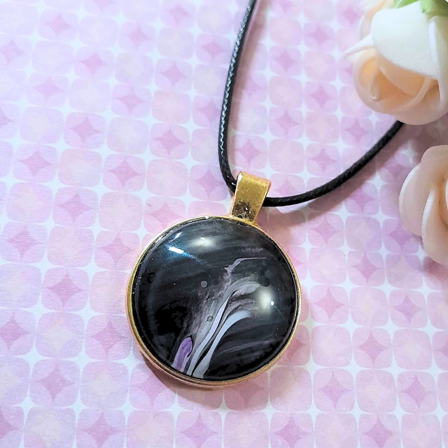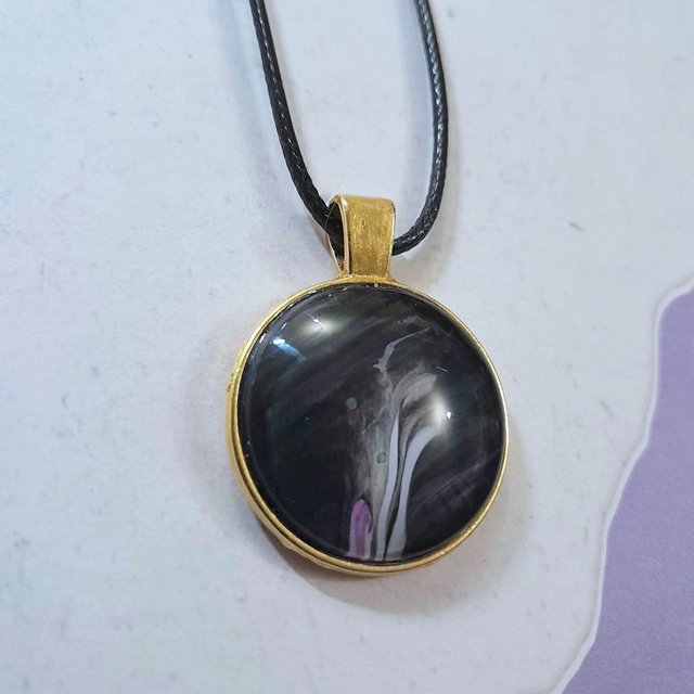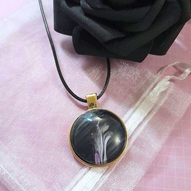 1. Type : Collier pendentif avec cordon noir ajustable.