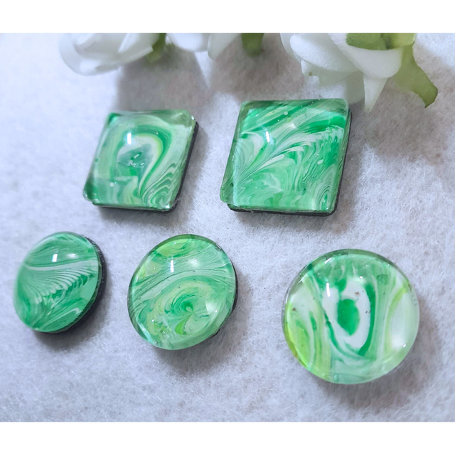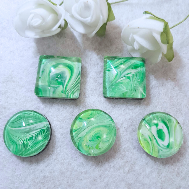 JARDIN SECRET - Magnets - Cabochons variés - Vert et blanc