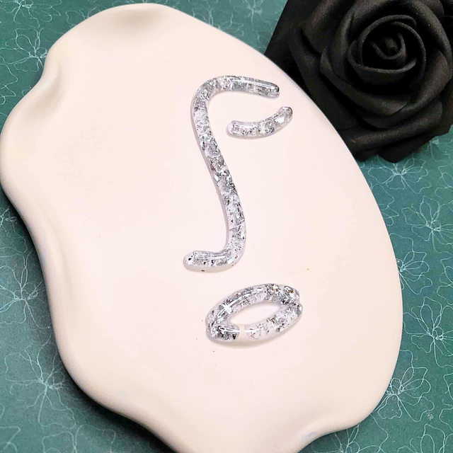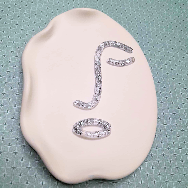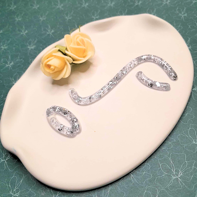 - Matière : Éco-résine et traits en résine UV avec incrustation de feuilles d'or argentées.