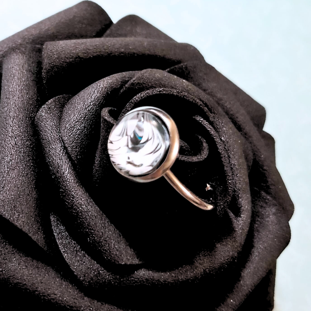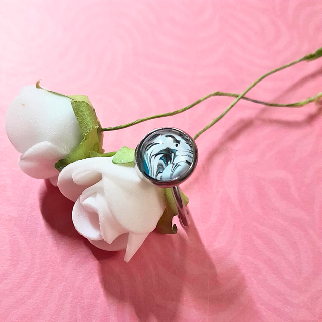 - Matière : Support en métal argenté et cabochon en verre de 10 mm.