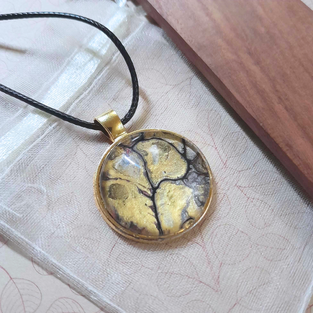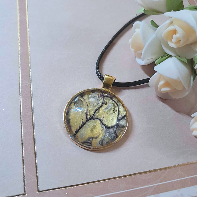 Ce bijou propose une esthétique chic et contrastée, où l'éclat du métal répond aux profondeurs du motif protégé sous verre.
