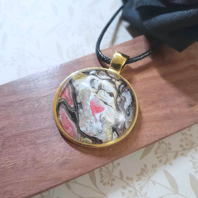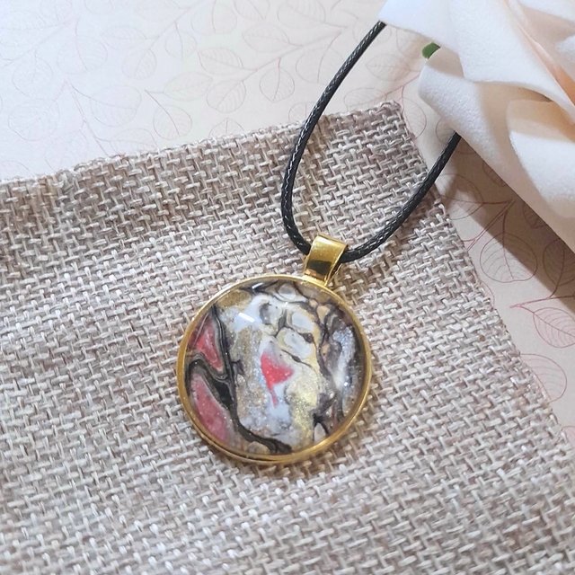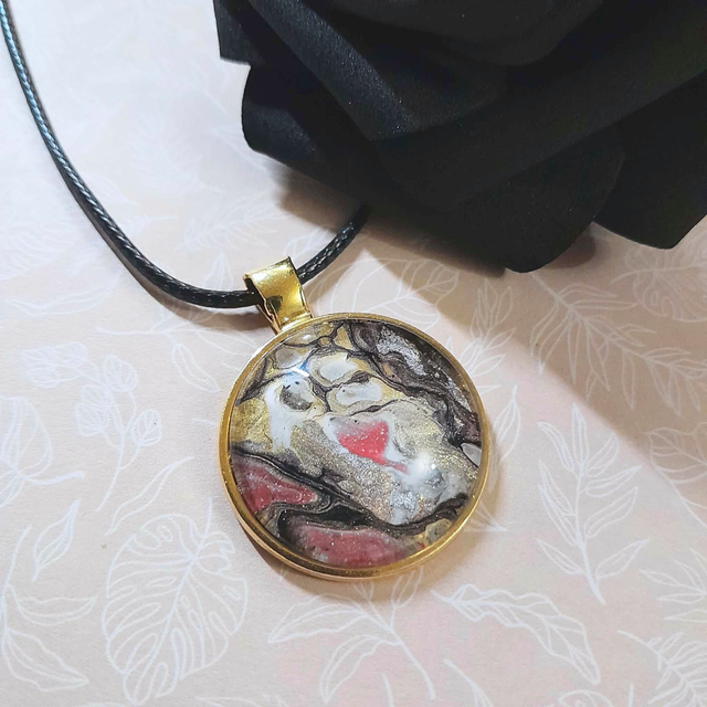 - Type : Collier pendentif sur cordon noir.