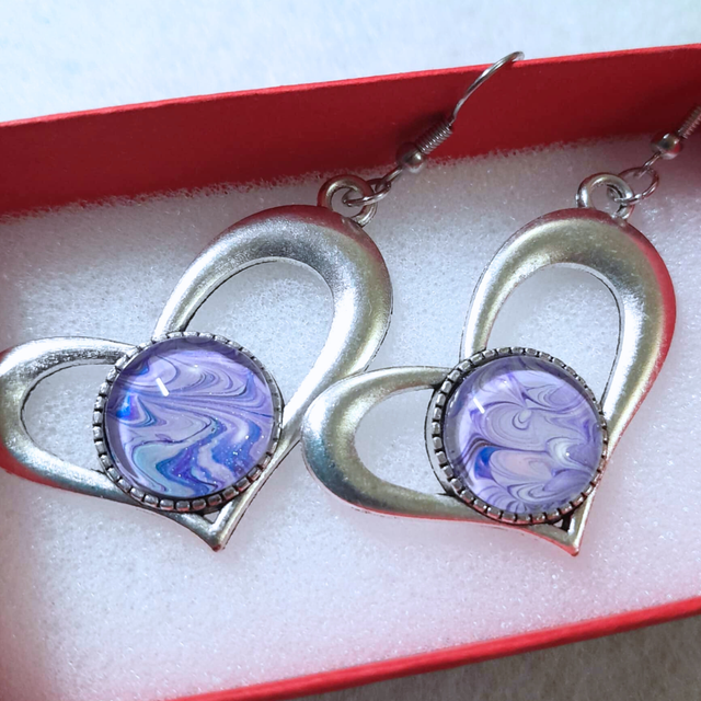 - Matière : Supports en métal argenté en forme de cœur et cabochons en verre de 14 mm.