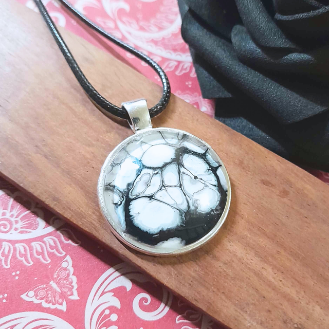 - Type : Collier pendentif sur cordon noir.