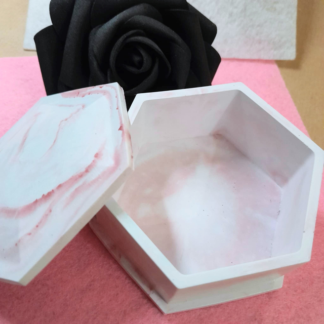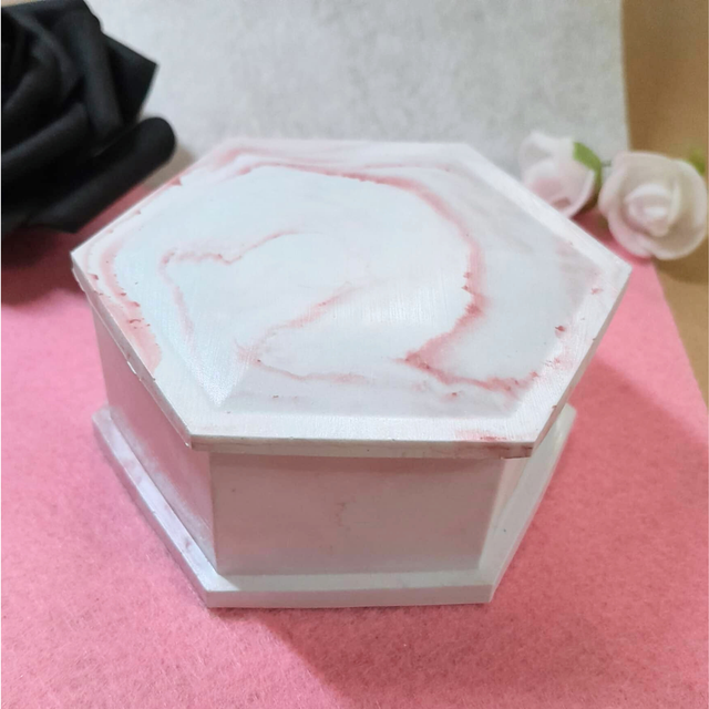 MARBRE ROSE - Boîte décorative hexagonale - Éco-résine blanc & rose