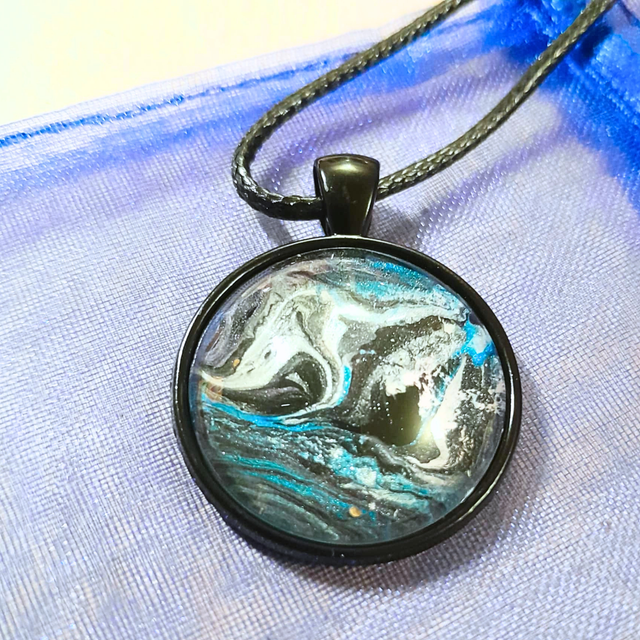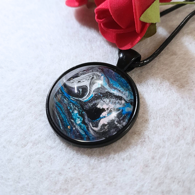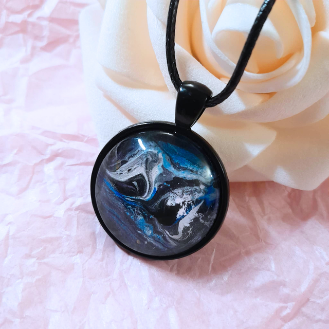 5. Le petit plus : Le choix du support et du cordon noirs qui accentue l'aspect "cosmique" et mystérieux du bijou, en faisant une pièce idéale pour les rêveurs.