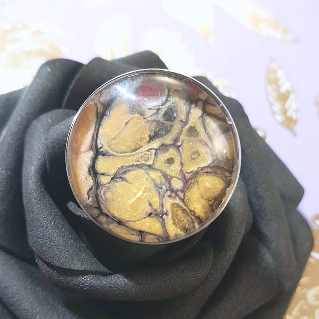5. Le petit plus : L'éclat du métal argenté du support met en valeur les nuances dorées du motif pour un rendu chic et intemporel.