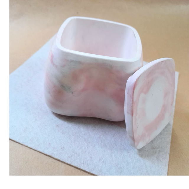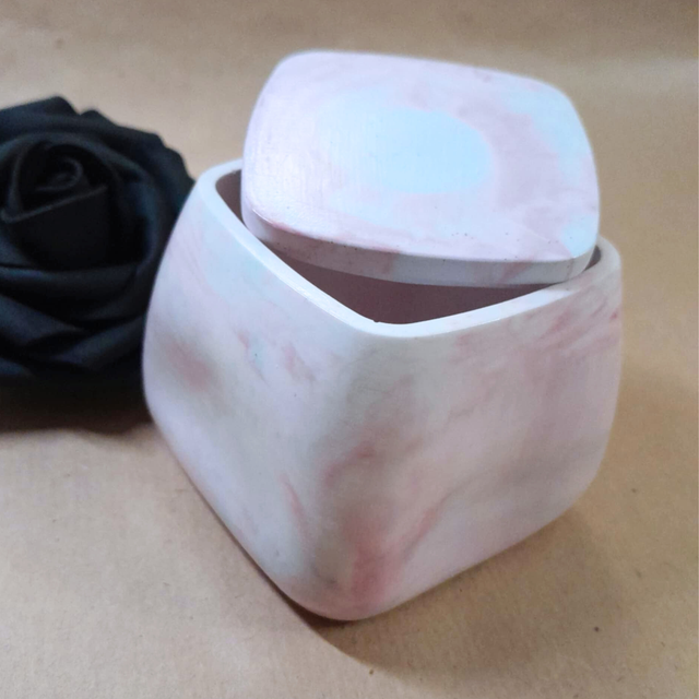 NUAGES MARBRES - Boîte décorative en Éco-résine - Rose poudré et bleu ciel
