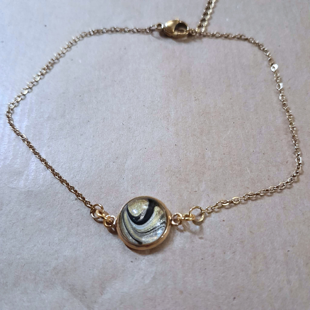 5. Le petit plus : Sa chaîne fine et élégante qui souligne la délicatesse du poignet tout en mettant en valeur l'éclat du motif doré.