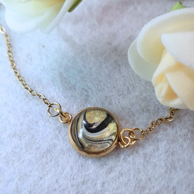 4. L'histoire du bijou : Chaque pièce est unique et faite main. Ce bijou symbolise le luxe et le mystère à travers l'alchimie des pigments capturés sous le verre.