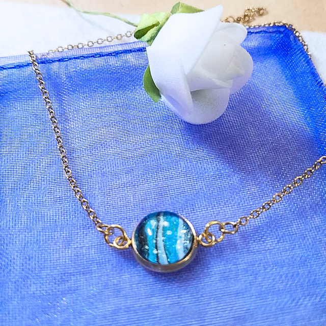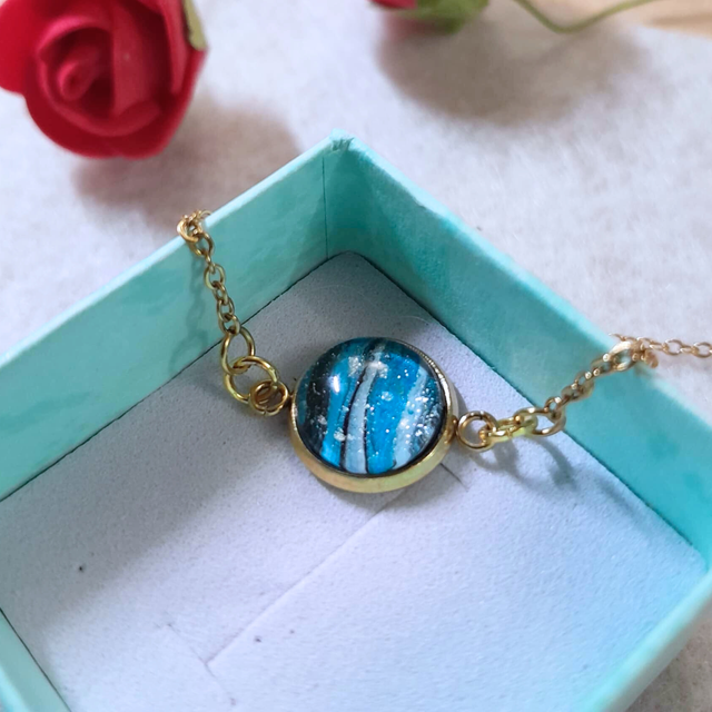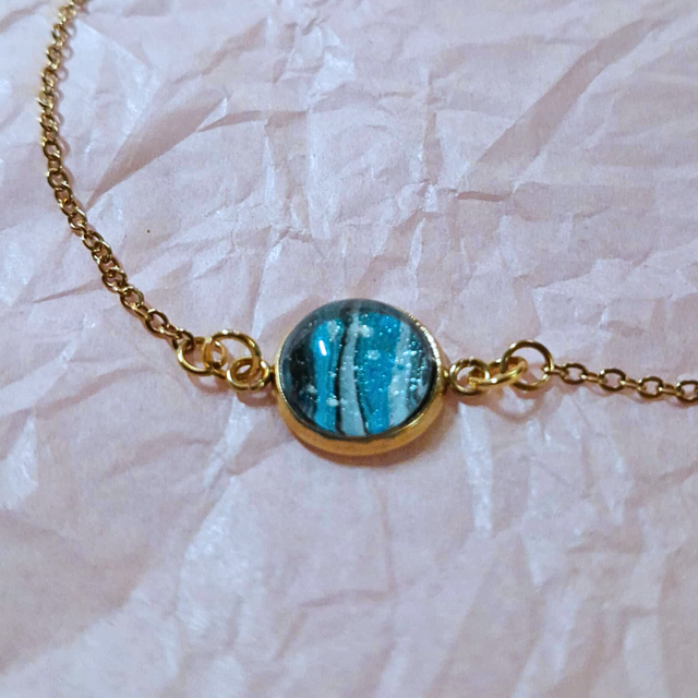 - Matériaux : Métal doré et cabochon en verre de 10 mm.