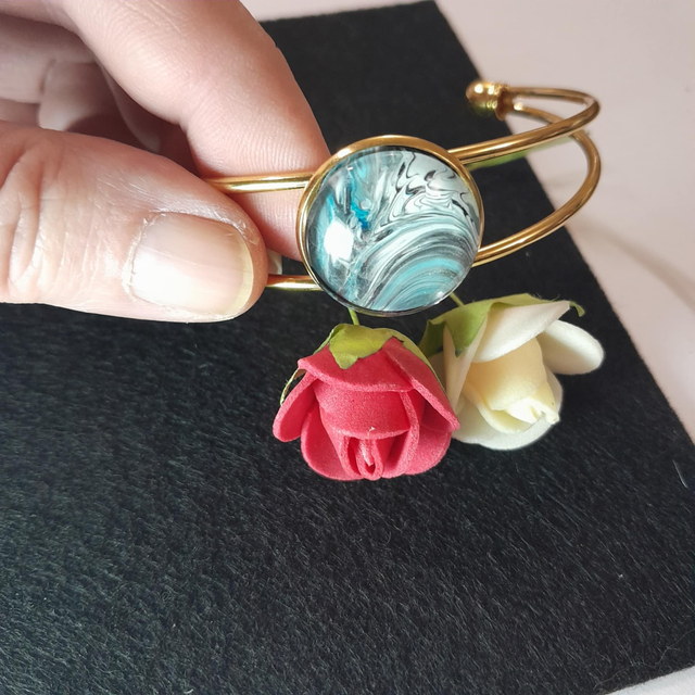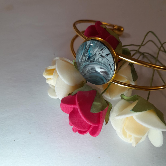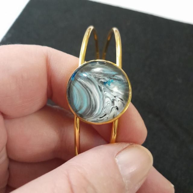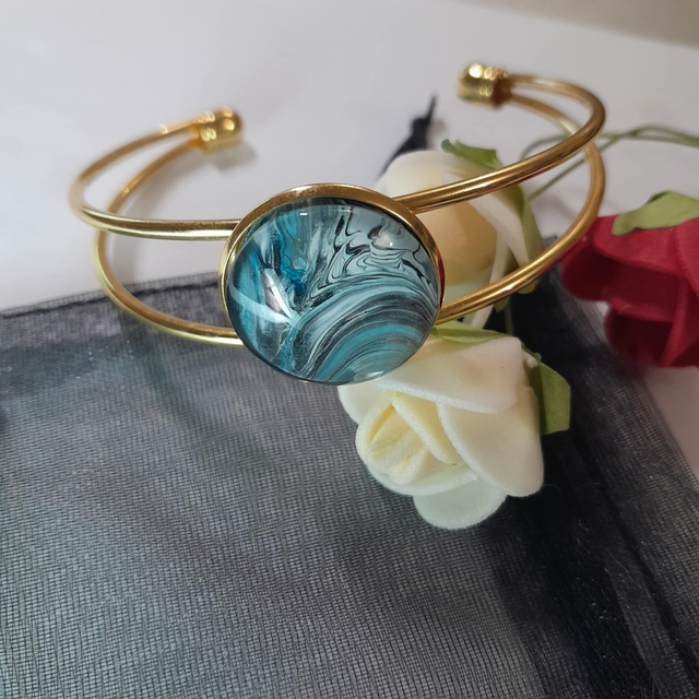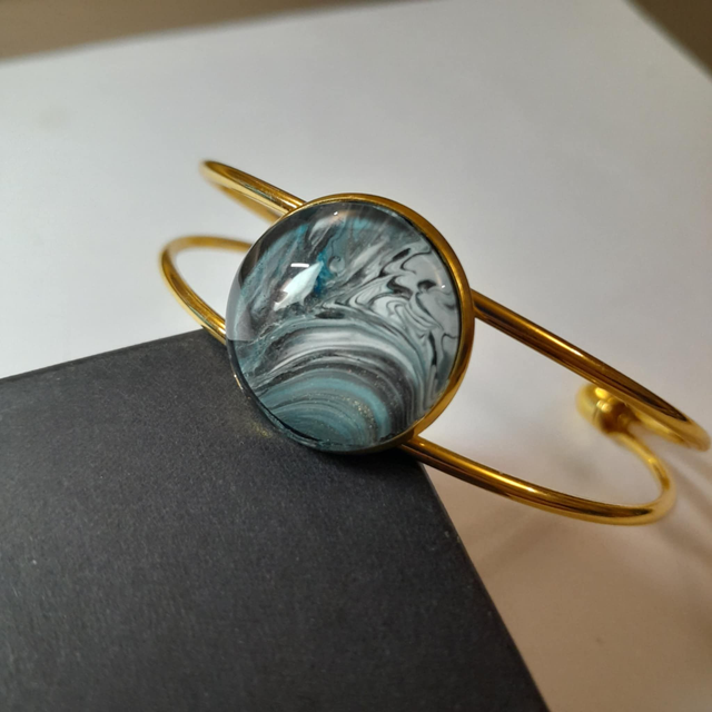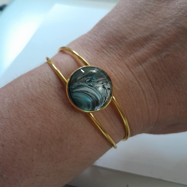 ONDES MARINES - Bracelet jonc - Or et Bleu Canard
