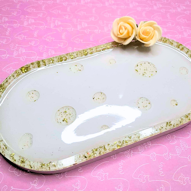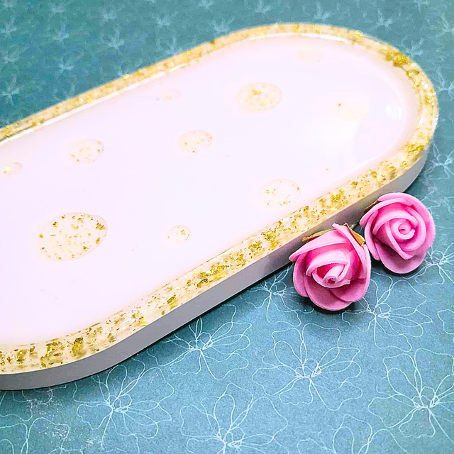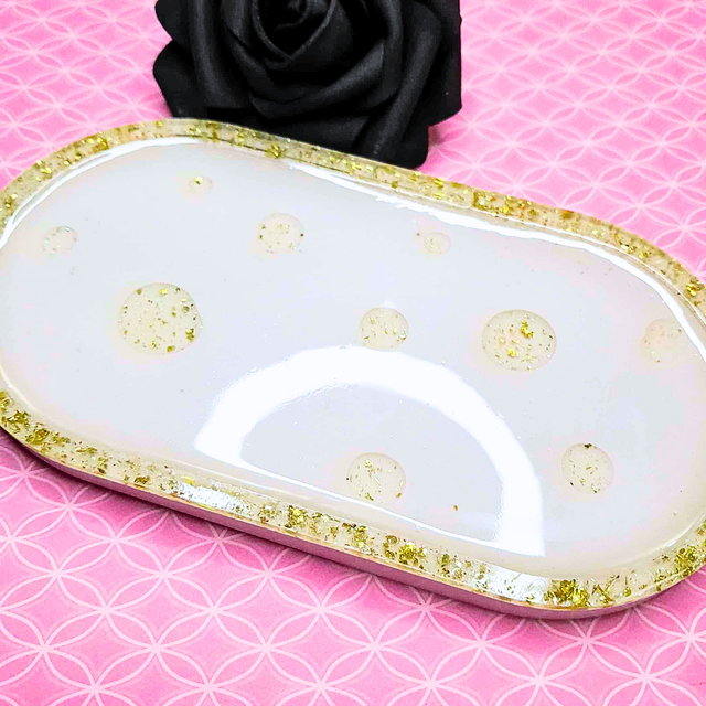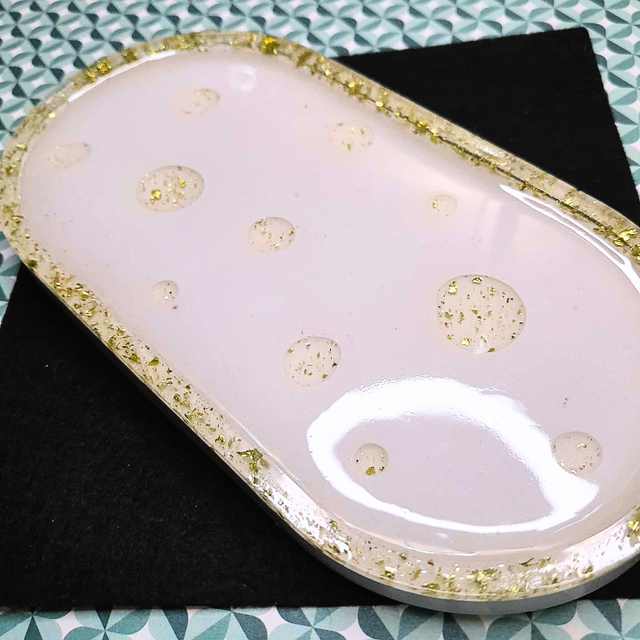 - Détails : Incrustations de feuilles d'or véritables sous résine.