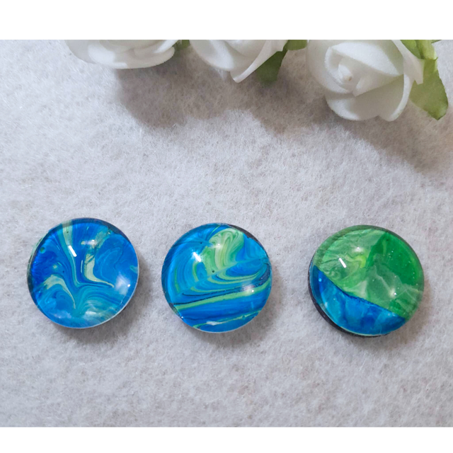 PLANETE BLEUE - Magnets - Cabochons ronds - Bleu et vert