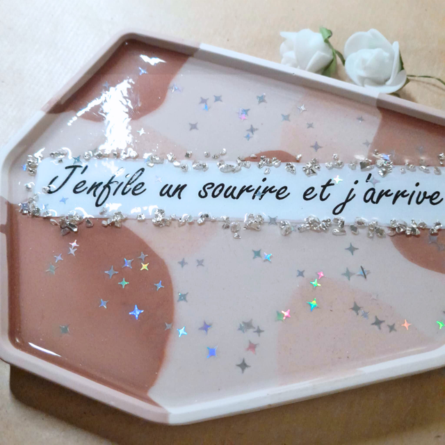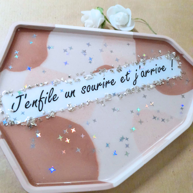 - Type : Vide-poche décoratif à message.