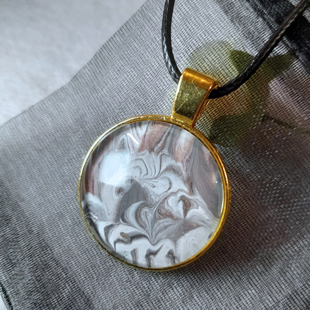 2. Matériaux : Support en métal doré, cabochon en verre de 25 mm et cordon en cuir PU noir ajustable.