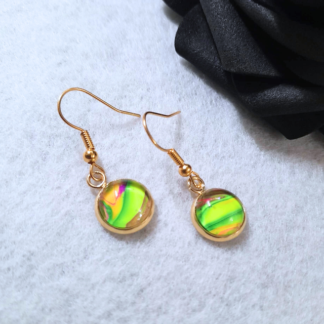 2. Matériaux : Supports en métal doré et cabochons en verre de 10 mm.