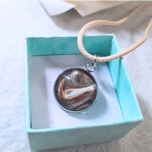 4. Le petit plus : Son format délicat de 14 mm et son cordon beige qui soulignent la douceur des pigments bruns et dorés, créant un ensemble harmonieux et facile à porter au quotidien.