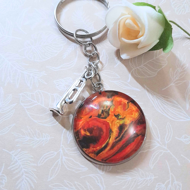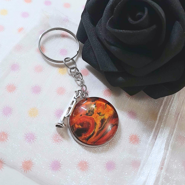 - Matière : Cabochon en verre de 25 mm et breloque trompette.