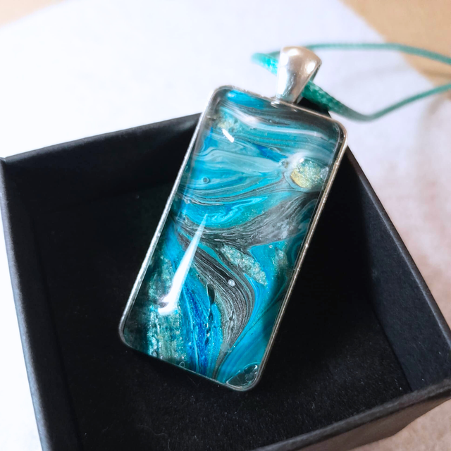 3. Technique : Pièce unique réalisée en peinture fluide. La fusion des pigments et le mouvement des couleurs sont figés sous le verre, garantissant un rendu singulier pour chaque exemplaire.