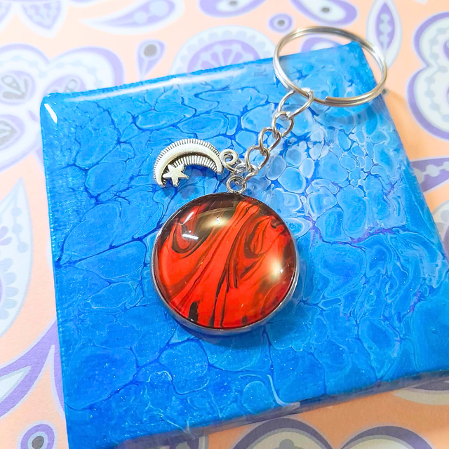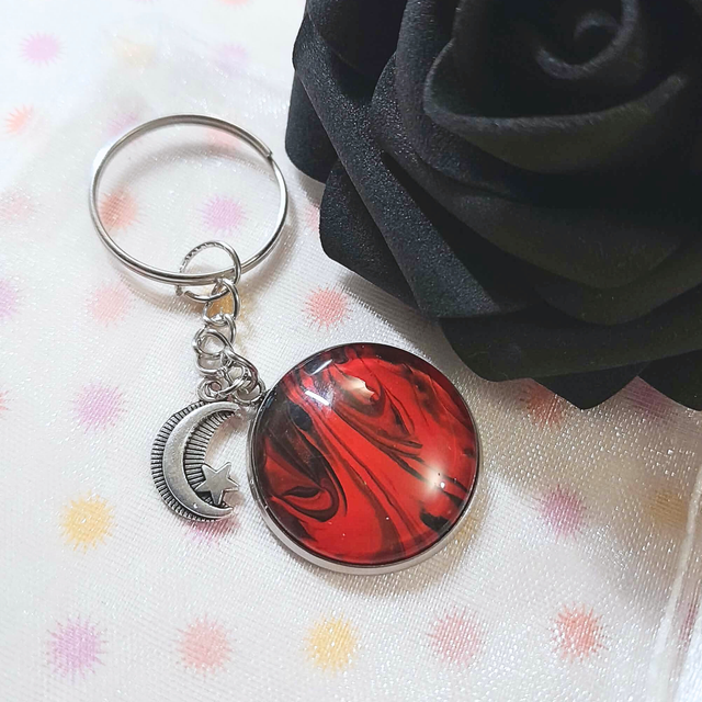 - Matière : Cabochon en verre de 25 mm et breloque lune.